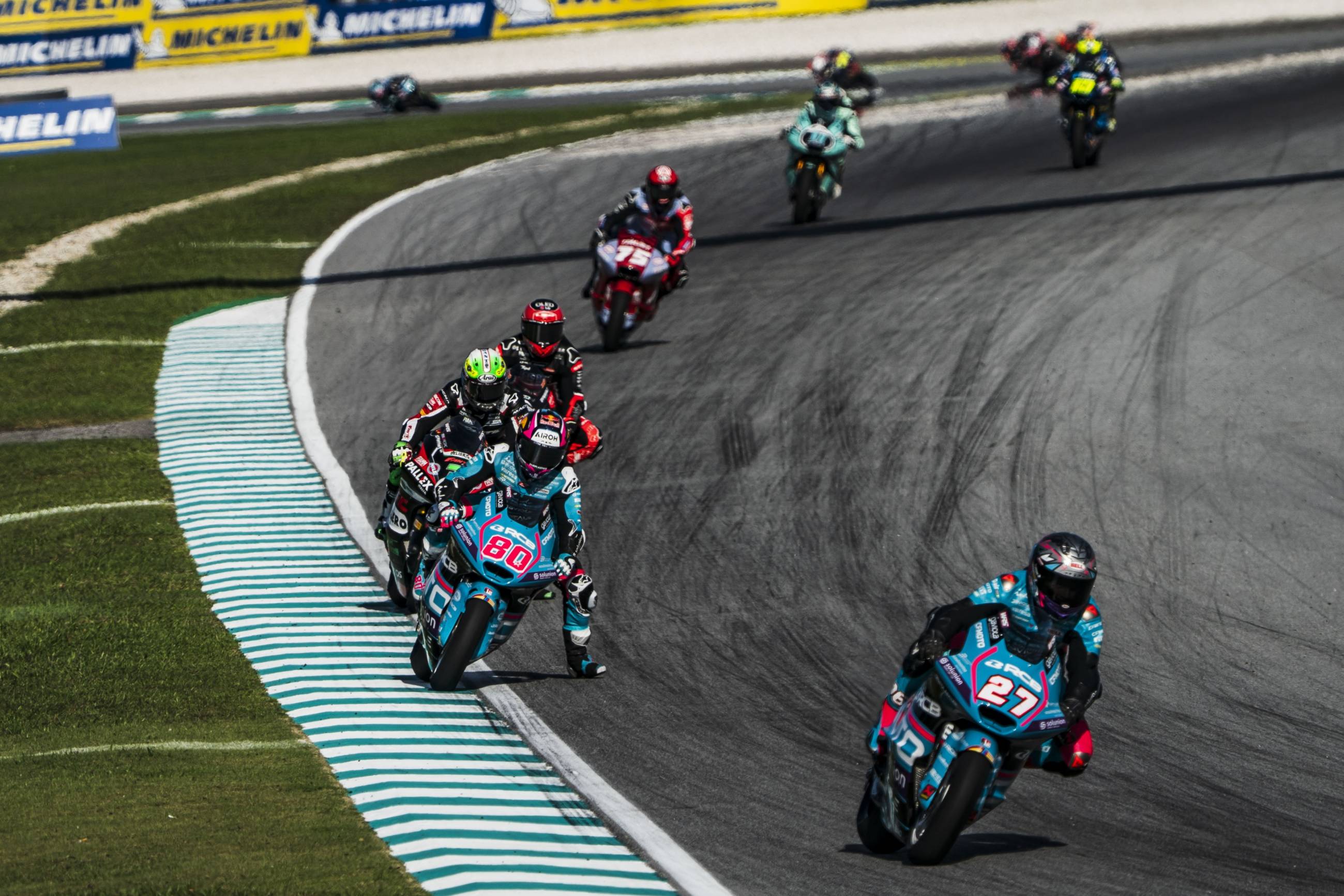 4th Dani Holgado (+4.358): “It was a pretty tough race. The conditions were very different from what we had during the weekend. This situation was the same for everyone, so I tried to adapt as best I could, but I had some difficulties stopping the bike in the last part of the braking. I gave it my all and tried everything to get on the podium. I'm taking away a good lesson for the last two races: we've learned how to manage those moments of discomfort with the tyre, something I hadn't been able to do for a long time. I'm happy with the progress and how we've improved session after session. Thanks to the team for their incredible work in helping me throughout the weekend.”