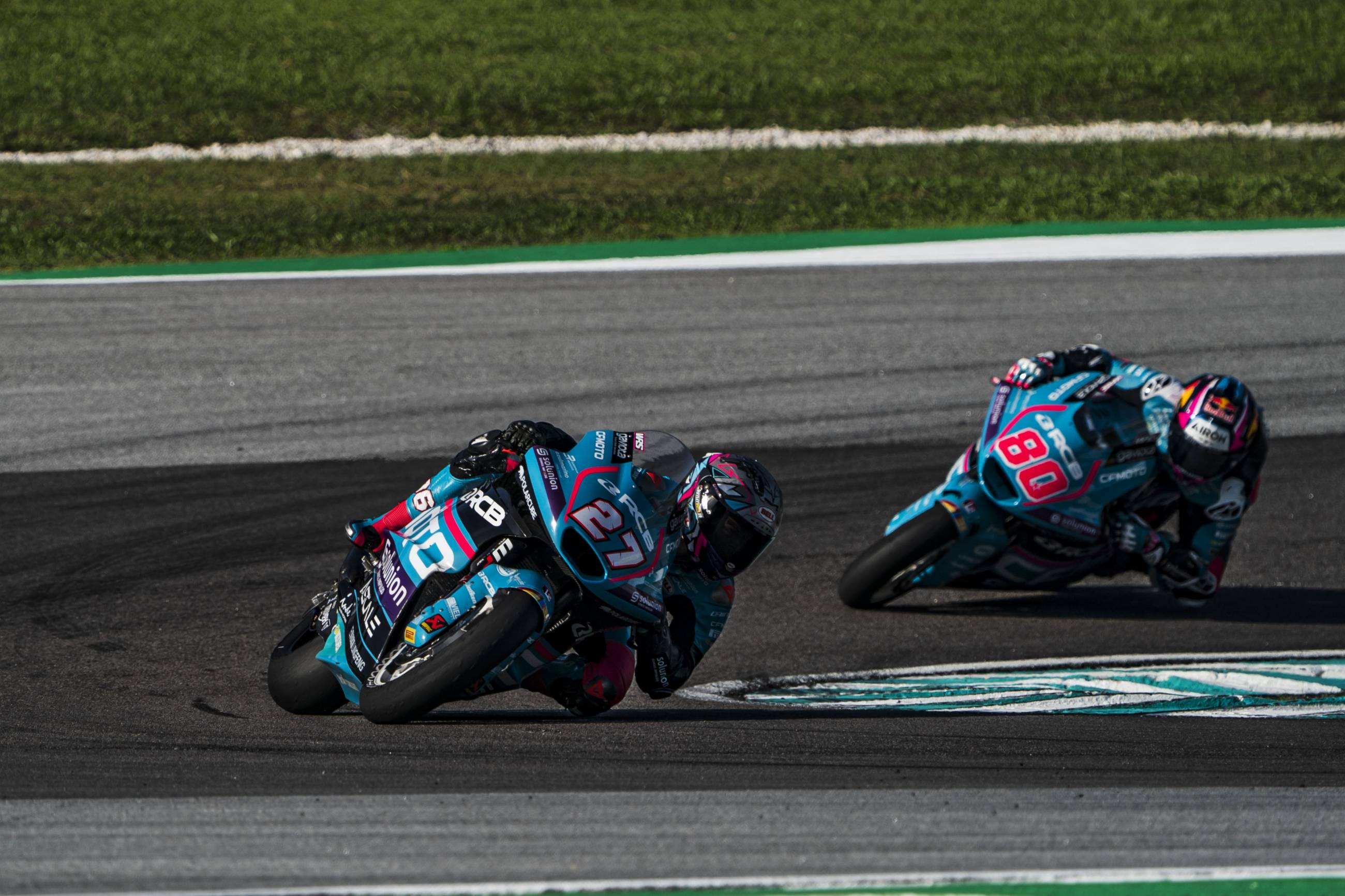 The CFMOTO RCB Aspar Team riders put in a magnificent performance at Sepang despite the extreme conditions. David Alonso secured his second consecutive podium finish and repeated the second place he achieved in Australia after battling with his teammate Dani Holgado, who finished fourth. Today's victory went to Jake Dixon and Barry Baltus completed the podium in third place. Diogo Moreira, who finished fifth, becomes the new leader in the intermediate category, nine points ahead of Manu González, who suffered a crash with two laps to go and failed to score any points despite rejoining the race.