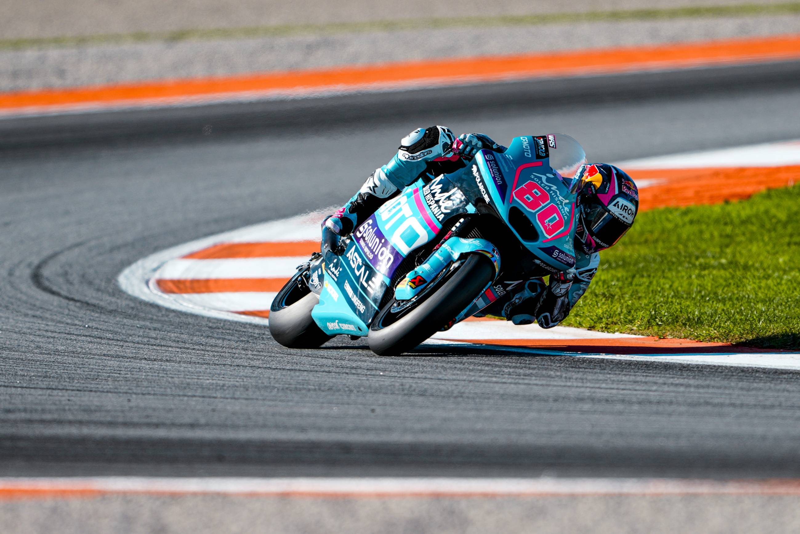 Dani Holgado liderará la parrilla de salida de la carrera de Moto2 del Gran Premio de la Comunitat Valenciana. El piloto alicantino ha batido su propio récord de la pista para ser el más rápido por segundo día consecutivo. El mejor debutante de la categoría intermedia estará acompañado por Izan Guevara y Senna Agius, que se han quedado a una décima del tiempo del piloto del CFMOTO Inde Aspar Team. Su compañero David Alonso no ha podido superar el corte de la Q1 y mañana comenzará la última carrera del año desde la vigésima plaza.