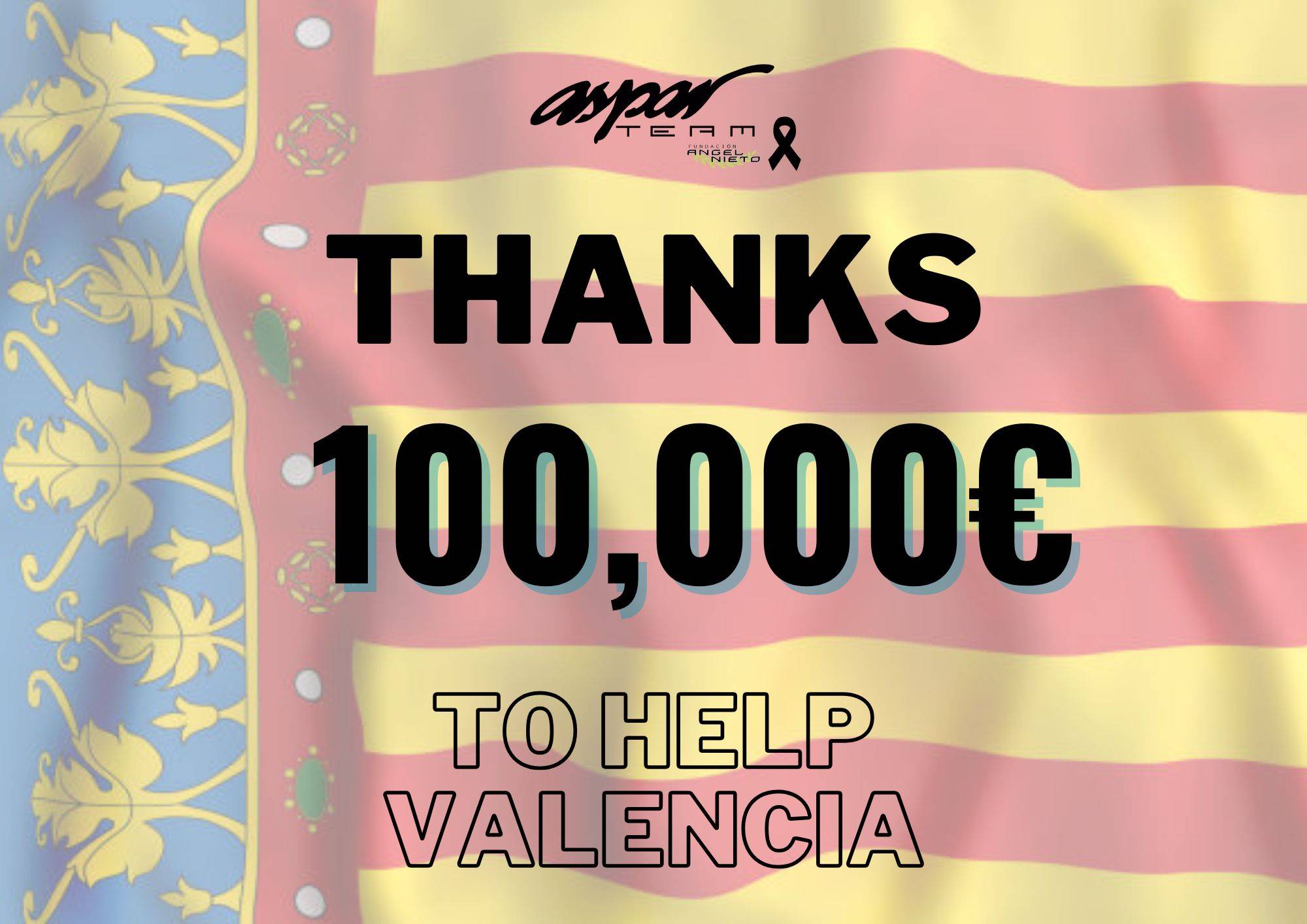 El Aspar Team arrancó el día 1 de noviembre una plataforma de recaudación de fondos en GoFundMe (https://www.gofundme.com/f/asparteamxvalenciacatastrophe) para ayudar a aliviar los daños que en la provincia de Valencia están viviendo sus ciudadanos debido a las intensas lluvias e inundaciones repentinas.