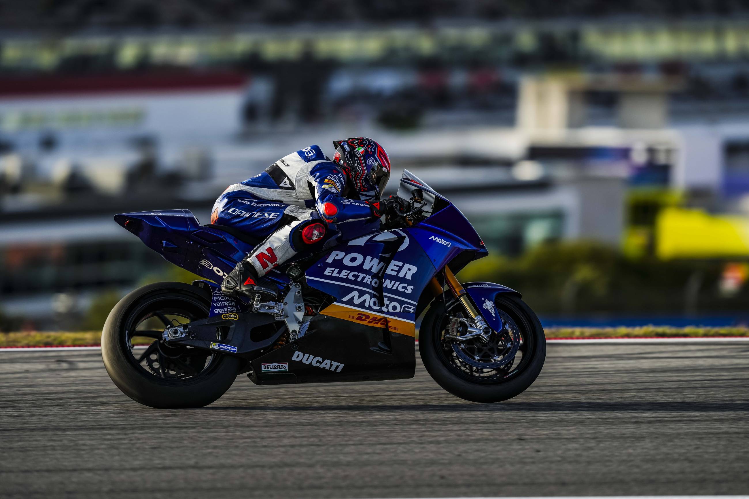 El Power Electronics Aspar ha bajado el telón de la categoría eléctrica del Mundial hoy con las dos últimas carreras de la temporada de MotoE, en un año en el que termina como el cuarto mejor equipo de la categoría. Jordi Torres y Kevin Zannoni han concluido ambas pruebas en el Autódromo Internacional del Algarve en el top 10 después de sendas remontadas desde la parte trasera de la parrilla. El Gran Premio de Portugal ha coronado al último campeón de la categoría eléctrica, el italiano Alessandro Zaccone, a quien le ha bastado con una victoria y una cuarta posición en Portimao para conseguir su primer título de campeón del mundo después de una temporada regular y consistente en la que ha sumado tres victorias y un total de cinco podios. Mattia Casadei no ha podido recortarle diferencias a su compatriota, pero ha sido capaz de retener la segunda posición de la clasificación, por delante de Matteo Ferrari, que ha subido dos posiciones en esta última cita y concluye el año tercero.