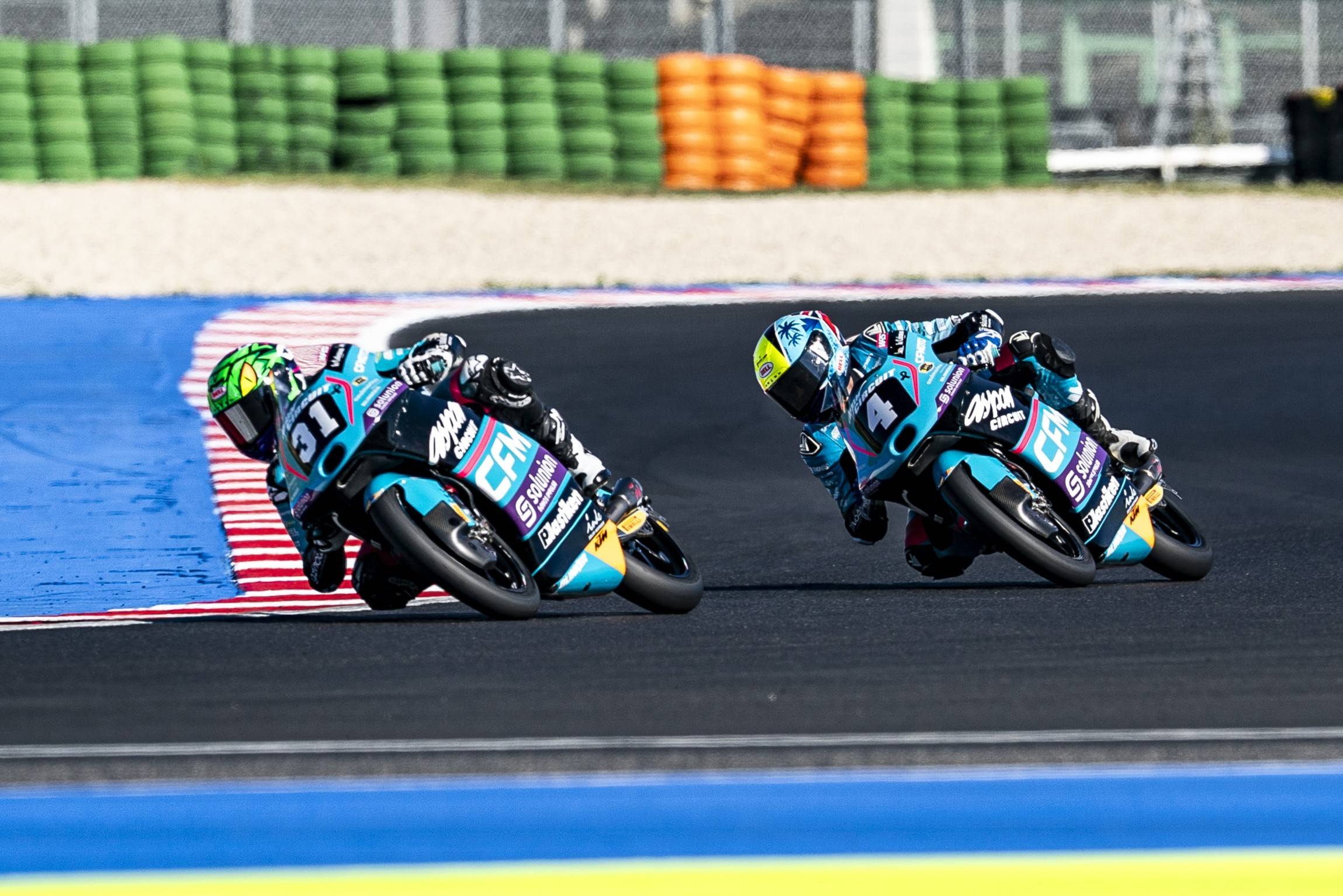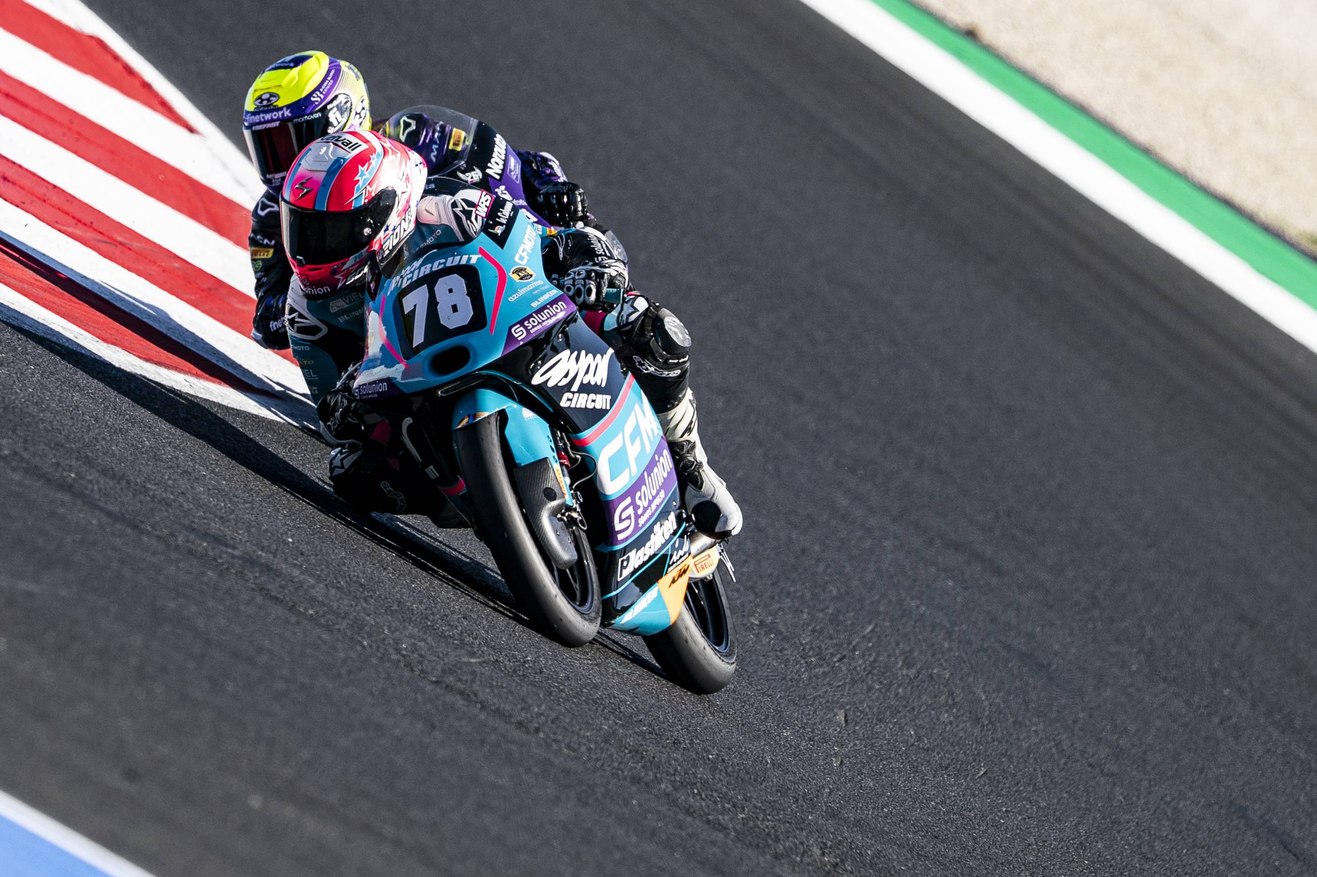 Álvaro Lucas ha afrontado el fin de semana en Misano dispuesto a recortar distancias en la clasificación general y ha vuelto a pelear por el podio en la primera carrera de la European Talent Cup. El piloto murciano, que salía desde la tercera fila de la parrilla, ha optado al podio hasta los últimos metros, cruzando la línea de meta en cuarto lugar y a tan solo 30 milésimas del tercer puesto. Desafortunadamente, una sanción por superar los límites de la pista le ha relegado a la séptima plaza. Lucas ha sufrido en la segunda prueba una caída que le aleja del líder de la categoría. Con estos resultados ha caído a la cuarta posición de la clasificación, con una diferencia de 35 puntos con el líder a falta de dos carreras para finalizar su primer año en la European Talent Cup. Su compañero Kerman Tínez no ha conseguido puntuar este fin de semana después de que tuviera que completar una “long lap” en una de ellas, y es decimonoveno en la general.