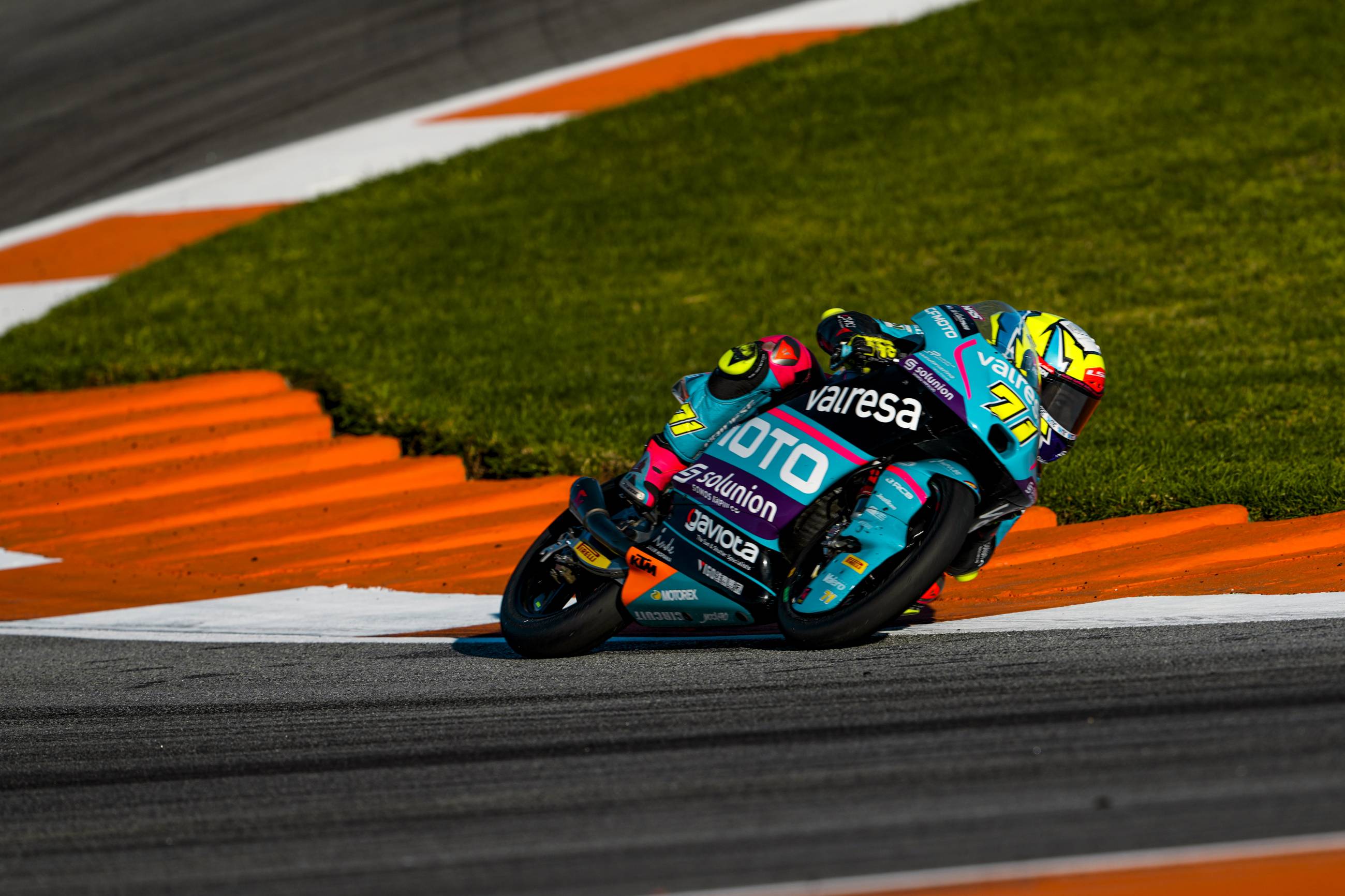 The second day of the Valencia Grand Prix began with a noticeable improvement in track conditions compared to yesterday. In this morning's free practice, both Máximo Quiles and Dennis Foggia improved on their times from Friday and fine-tuned the final details for this afternoon's qualifying and Sunday's race. In the afternoon, Dennis Foggia had to compete in Q1, although the Italian showed good progress that allowed him to qualify for Q2. In that session, the CFMOTO Valresa Aspar Team rider maintained a great pace and quickly achieved a good lap, but he did not change tyres in the final minutes, which prevented him from improving his time, a 1:37.702, with which he will start the last race of the year from fourteenth. On the other hand, his teammate Máximo Quiles fought for pole position again this weekend. The Spanish rider, who confirmed his participation in Q2 yesterday, has been very consistent since he took to the track and was one of the most competitive riders of the day. Quiles gave his all to achieve his third pole position in Moto3 and was just one tenth of a second away from achieving it, but he will still start the final round of the season from the front row, in third place.