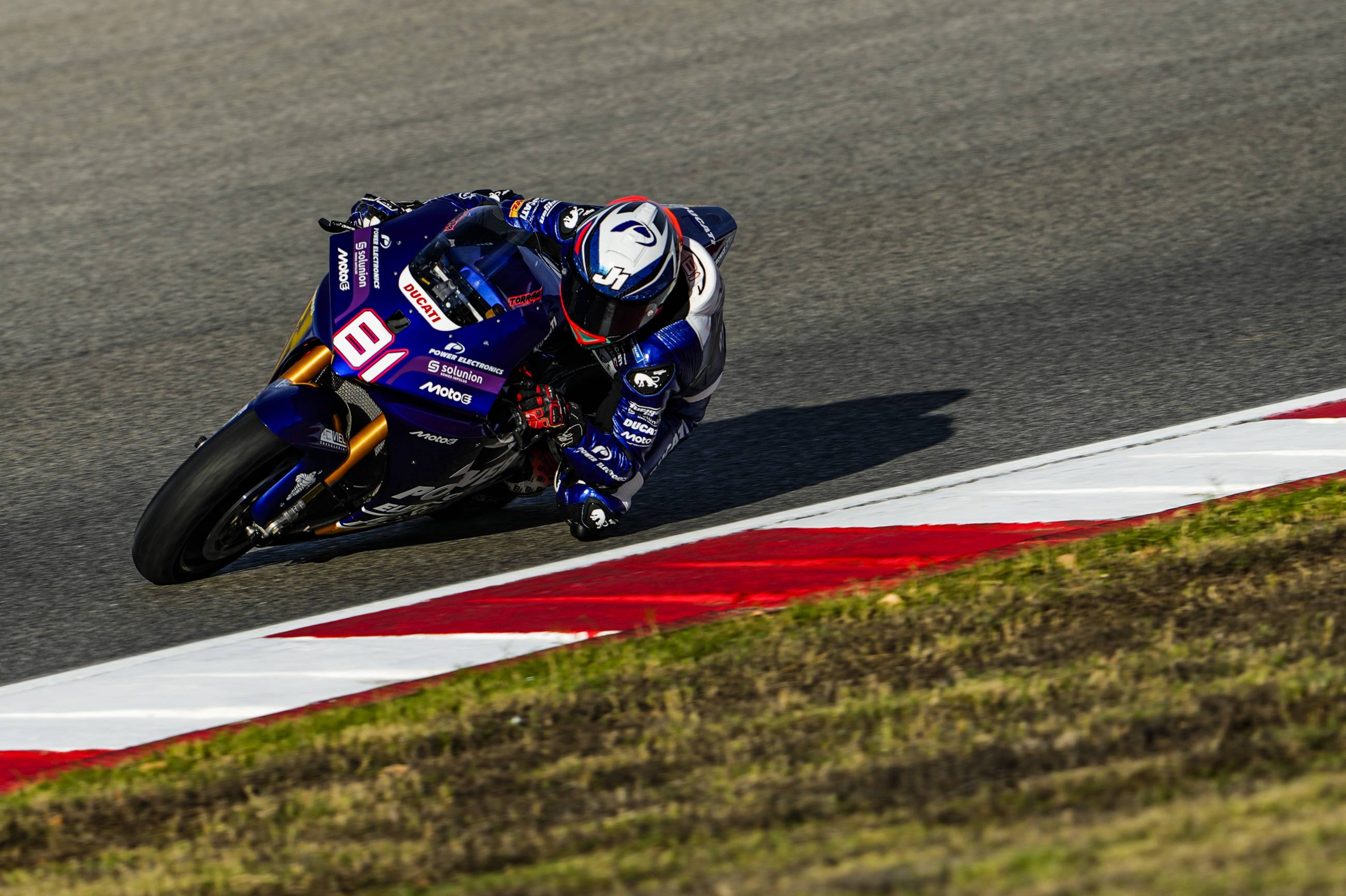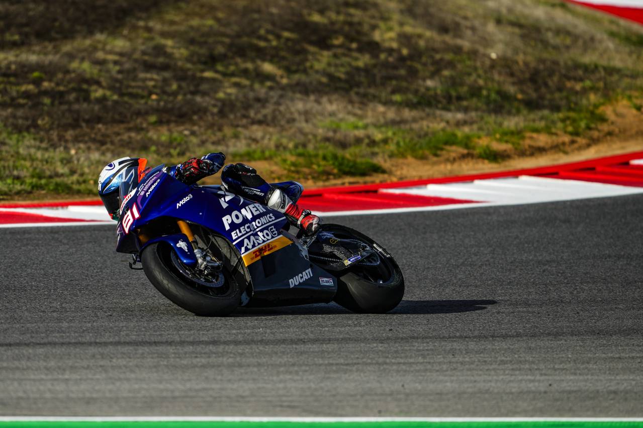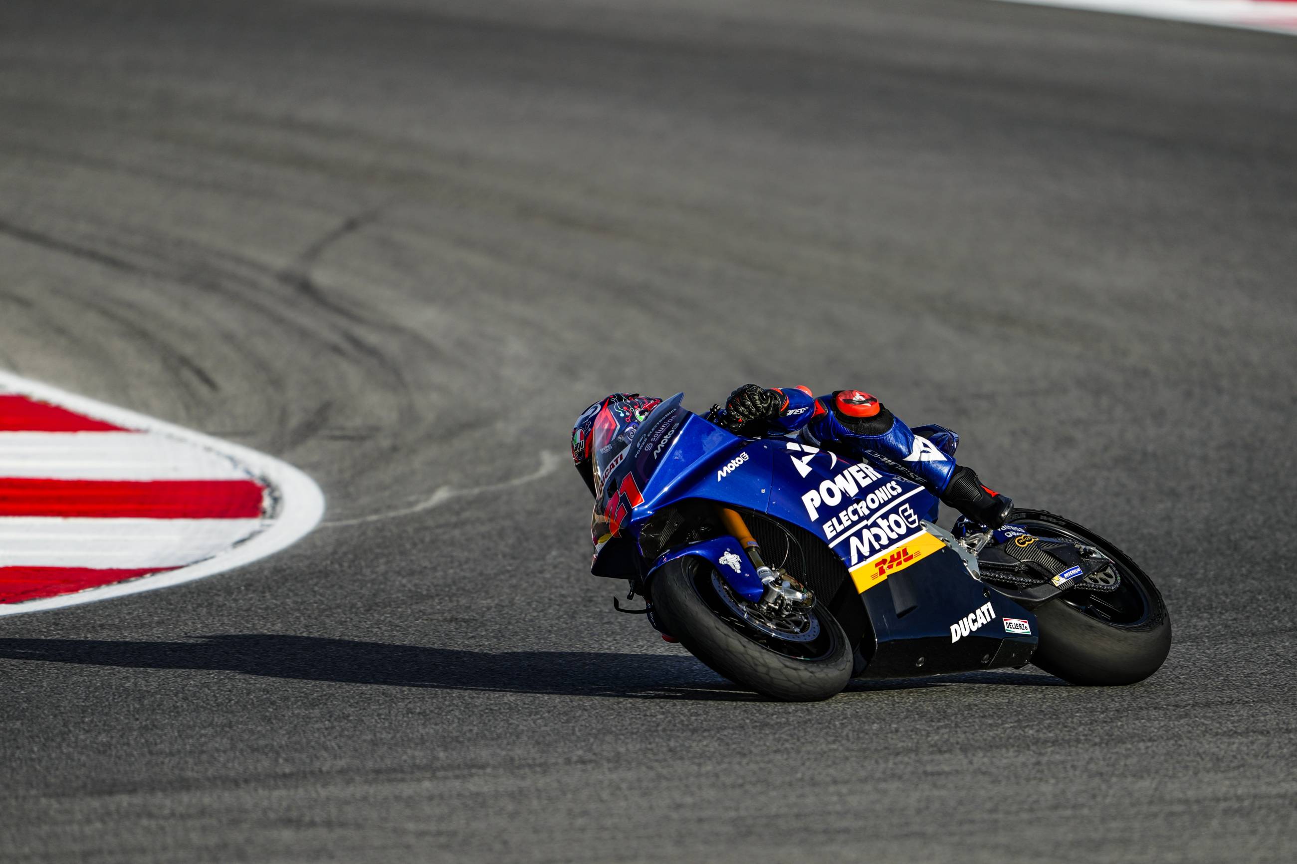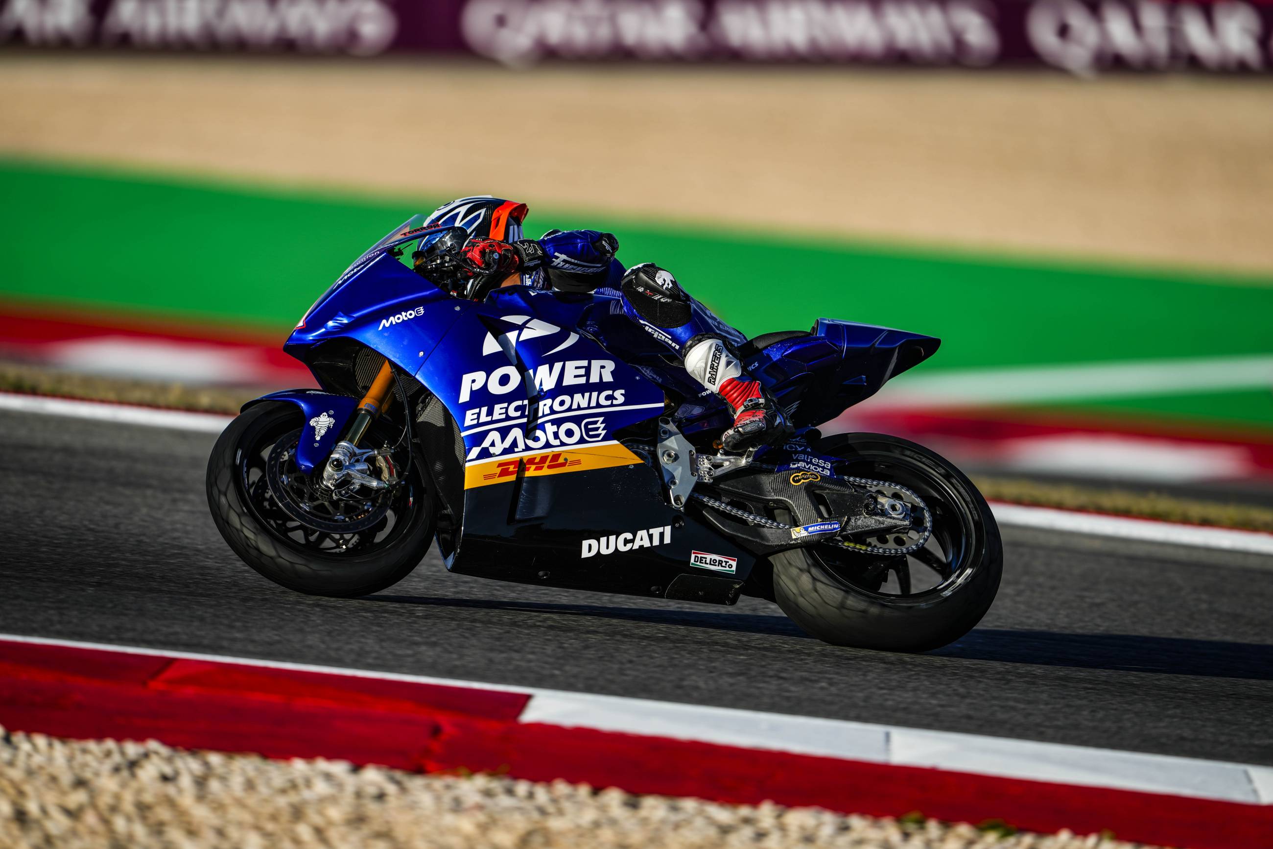 The Power Electronics Aspar Team riders faced a difficult Friday at the Autodromo Internacional do Algarve. Jordi Torres and Kevin Zannoni were unable to get through Q1, which took place in heavy rain, and tomorrow they will start the last two races of the season from eleventh and seventeenth position respectively on the starting grid. The last pole position in the electric category went to Italian Alessandro Zaccone, who leads the championship by five points over Mattia Casadei. Zaccone will be joined on the front row by Óscar Gutiérrez and Eric Granado, second and third respectively, while Casadei will start fourth. With fifty points up for grabs, the fight for the MotoE title involves up to seven riders with mathematical chances of winning it at the Portuguese round, which will close not only the season but also the era of the electric category in the world championship.