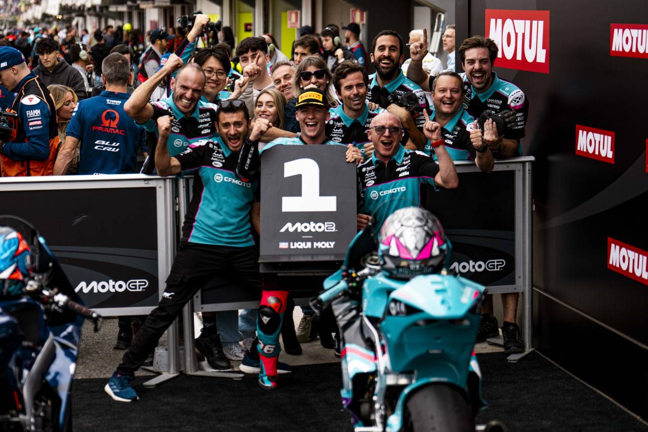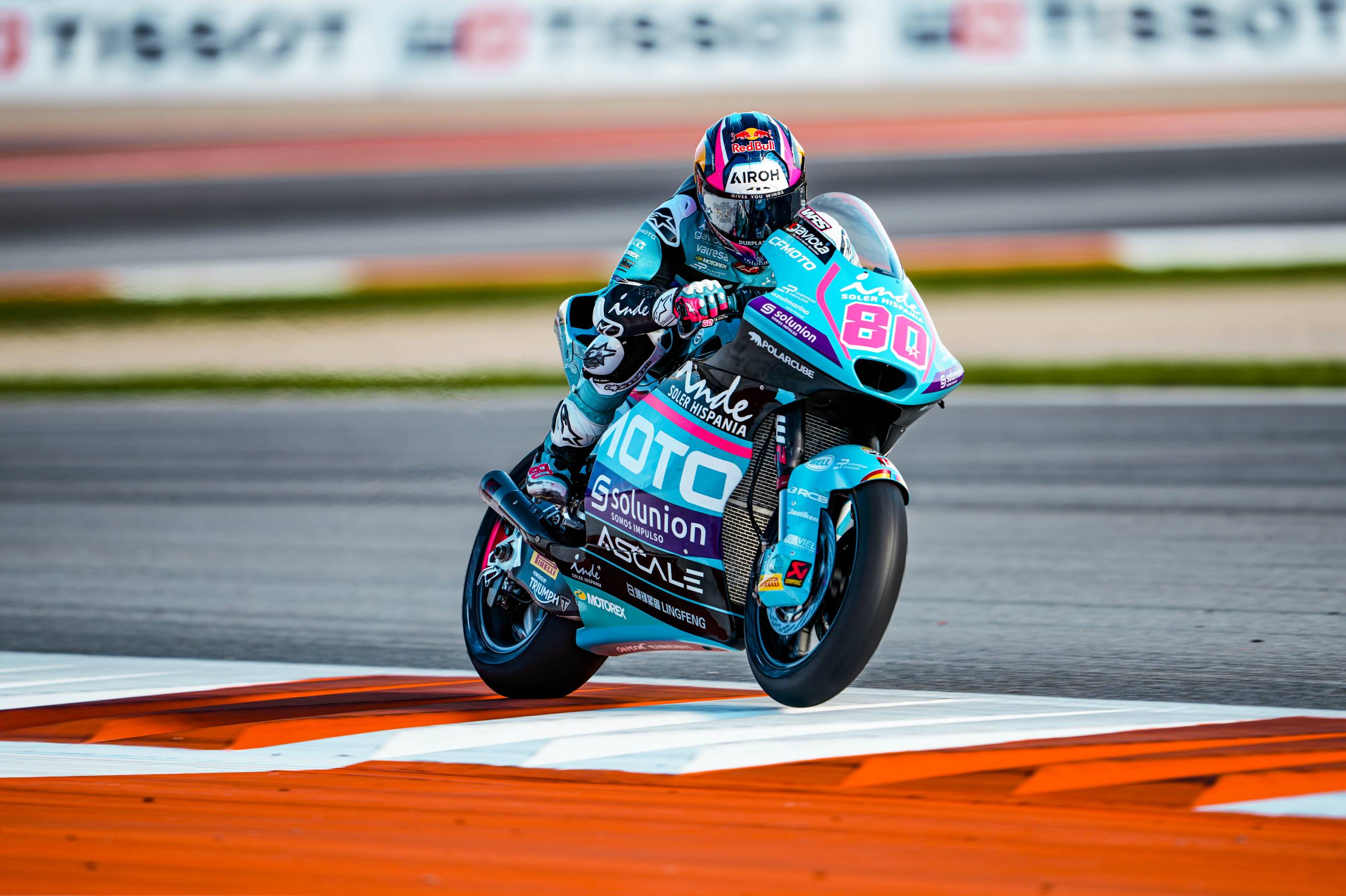 El Gran Premio de la Comunitat Valenciana ha dado por finalizada su segunda jornada con una bonita pelea por la pole de Moto2. Previamente, los pilotos de la categoría intermedia han puesto a punto sus motos en el entrenamiento libre de la mañana. Esta sesión se ha convertido en un momento clave para realizar un simulacro de carrera y llegar al domingo con las mejores garantías. Tanto Dani Holgado como David Alonso han aprovechado al máximo cada vuelta para preparar el entrenamiento cronometrado de la tarde. El colombiano ha tenido que enfrentarse a la Q1 en el Circuit Ricardo Tormo, algo que no ocurría desde el Gran Premio de Japón. Alonso ha logrado su mejor tiempo del fin de semana y ha dado lo mejor de sí mismo, pero no ha sido suficiente para pasar a la Q2 y mañana comenzará la última carrera de 2025 desde la séptima fila de la parrilla. Por otro lado, su compañero Dani Holgado continúa mostrando su mejor versión. El piloto del CFMOTO Inde Aspar Team no ha dado tregua en ningún momento y ha llegado a batir su propio récord en varias ocasiones para mantenerse en la primera posición. En los últimos minutos la pelea por la pole ha estado de lo más emocionante, pero Holgado ha vuelto a superarse para recuperar la primera plaza y sumar su cuarta pole en su primer año en Moto2.