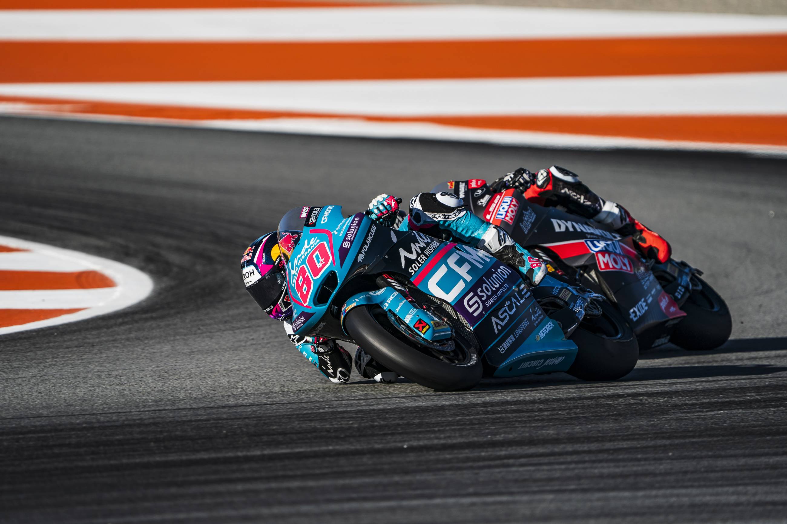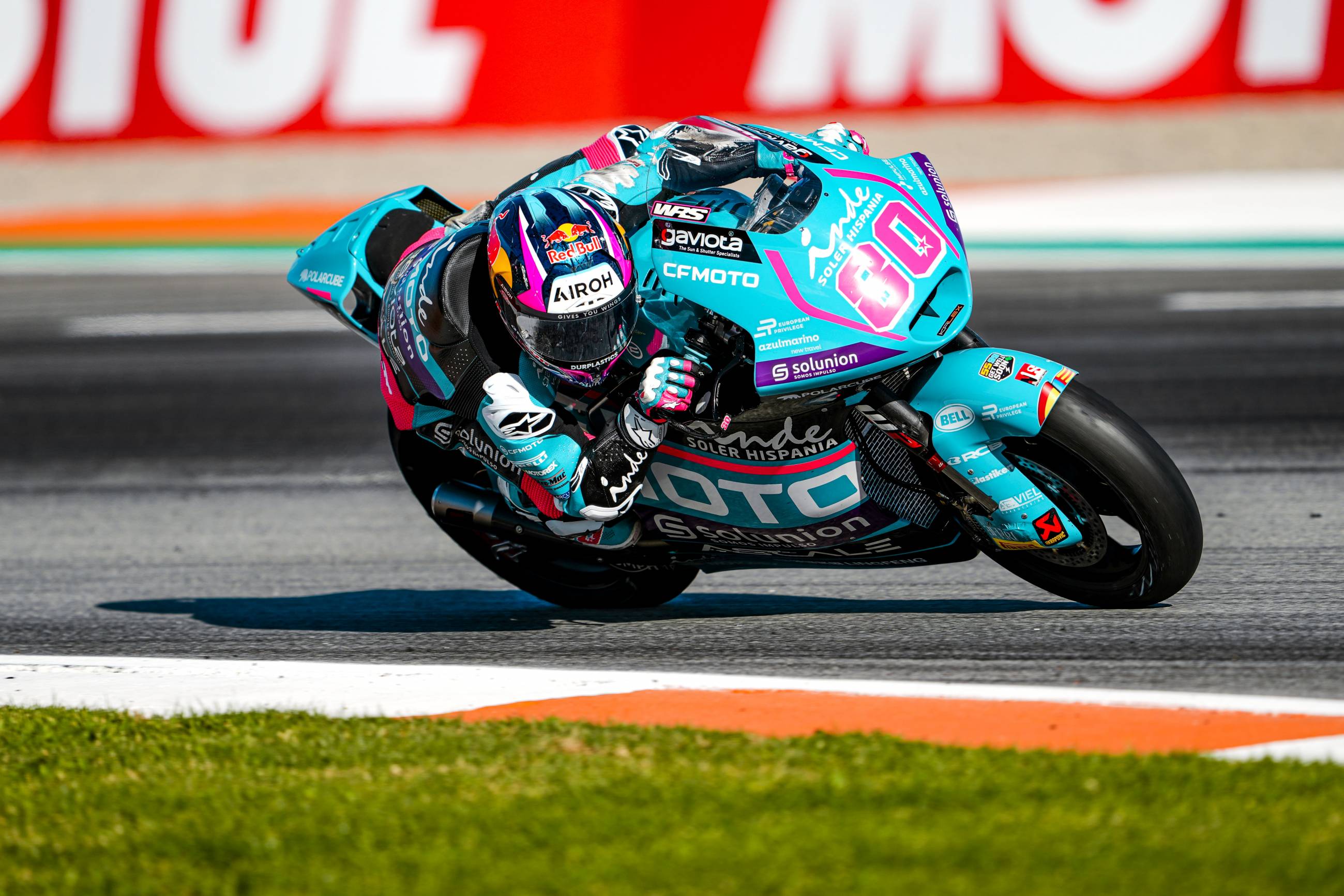 Dani Holgado liderará la parrilla de salida de la carrera de Moto2 del Gran Premio de la Comunitat Valenciana. El piloto alicantino ha batido su propio récord de la pista para ser el más rápido por segundo día consecutivo. El mejor debutante de la categoría intermedia estará acompañado por Izan Guevara y Senna Agius, que se han quedado a una décima del tiempo del piloto del CFMOTO Inde Aspar Team. Su compañero David Alonso no ha podido superar el corte de la Q1 y mañana comenzará la última carrera del año desde la vigésima plaza.