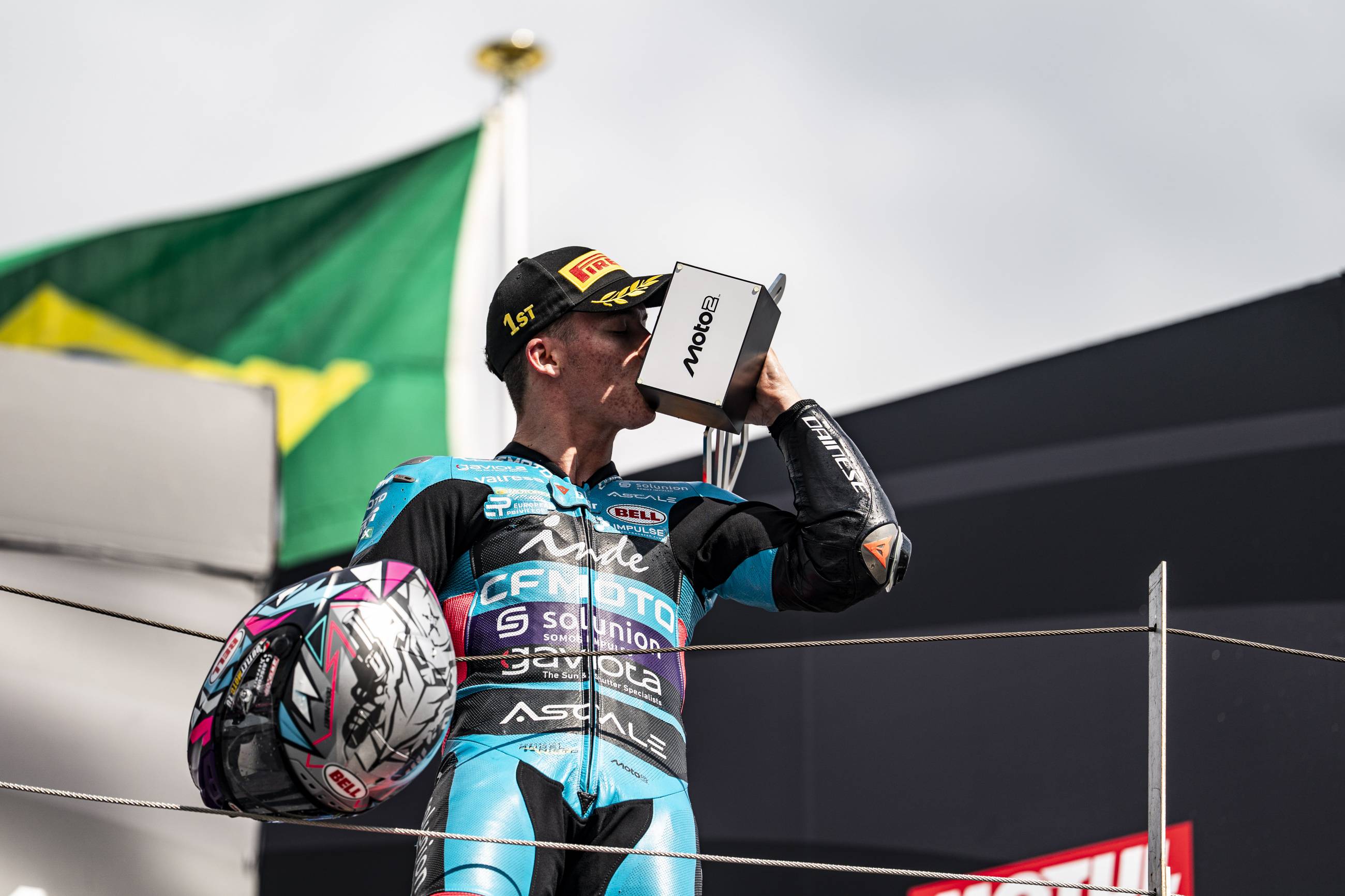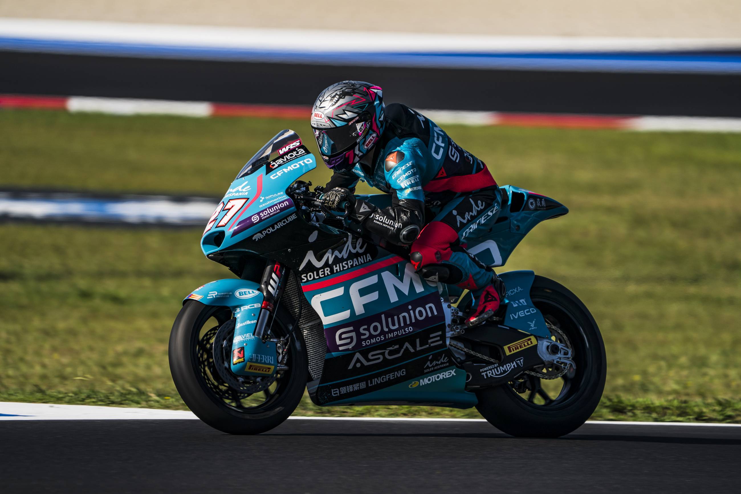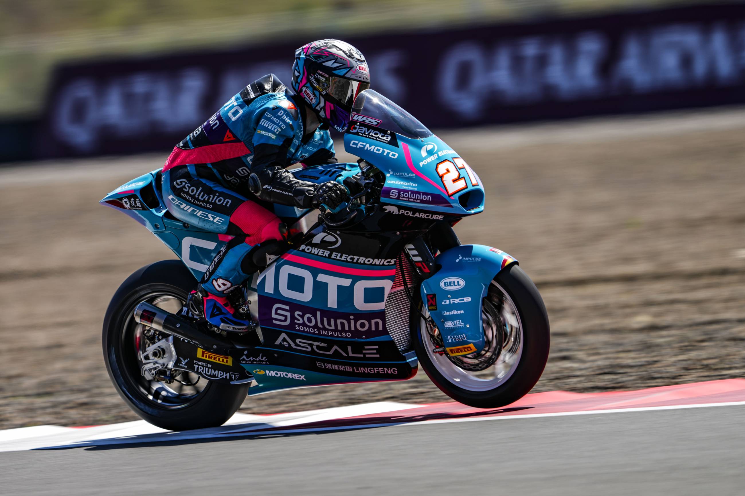 El piloto del CFMOTO Aspar Team no se marcaba grandes objetivos, al menos en términos de resultados, en su primera temporada en Moto2. Sí quería dar pasos adelante, pequeños pero seguros, y afianzarlos para continuar creciendo. Sumó puntos ya en su primera carrera en Moto2, y para cuando terminó el GP de Catar, en cuarta posición, ya era cuarto del Mundial. Pero a ese buen inicio le siguieron cuatro carreras sin puntuar y otras tres en las que terminó entre la décima y la decimoquinta posición.